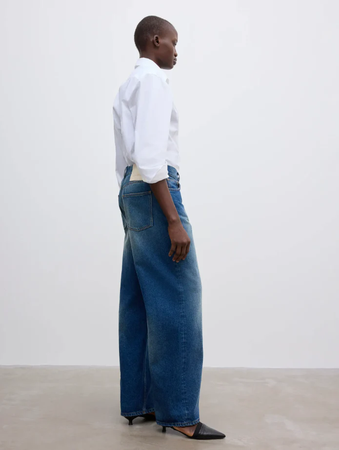 A mid-rise long-length denim in 100% organic cotton with a baggy fit, wide leg, slightly dropped drotch and classic 5-pocket frame. Made in Italy.
