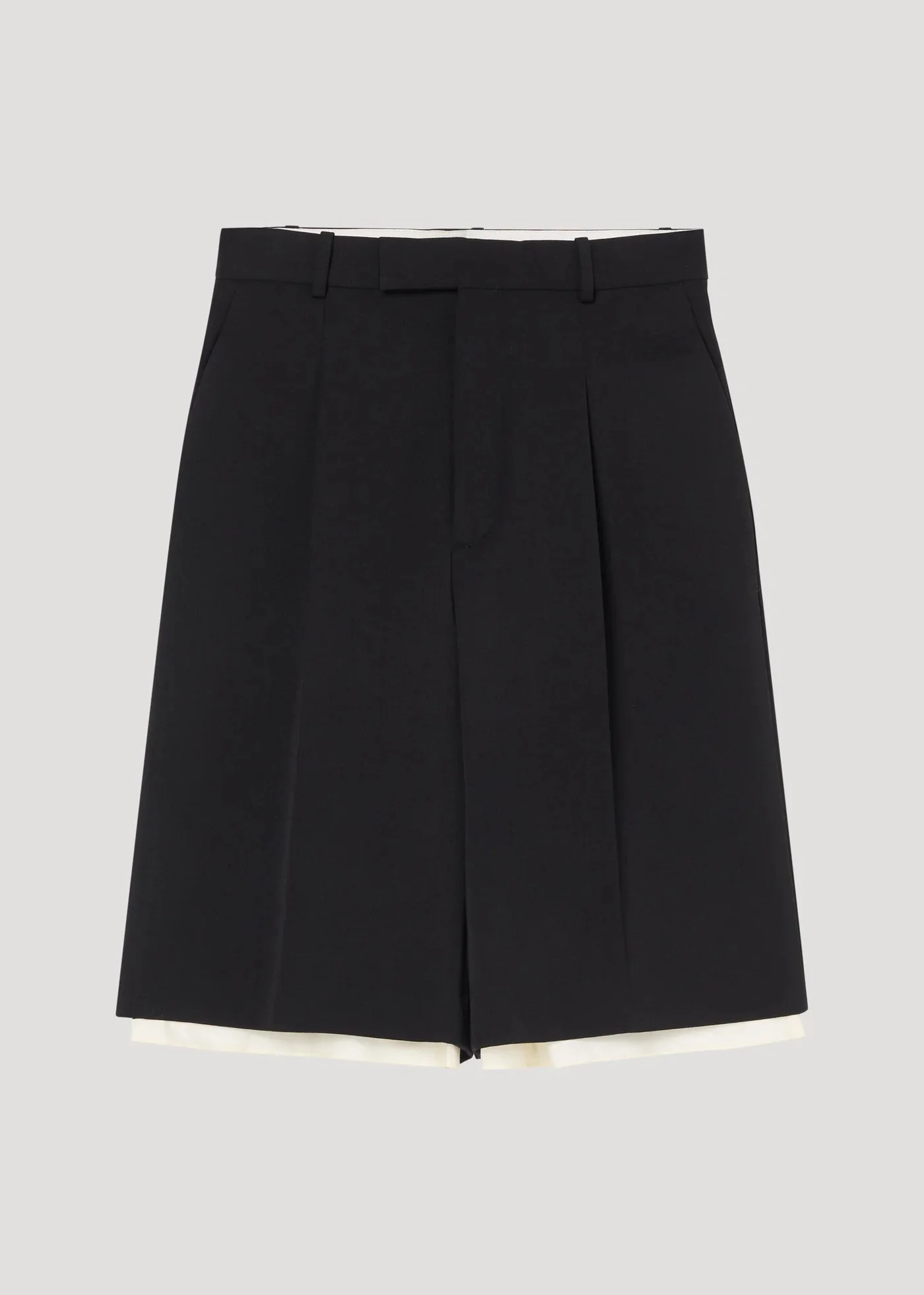- Culotte shorts, tailored waistband, contrast flowing underlayer