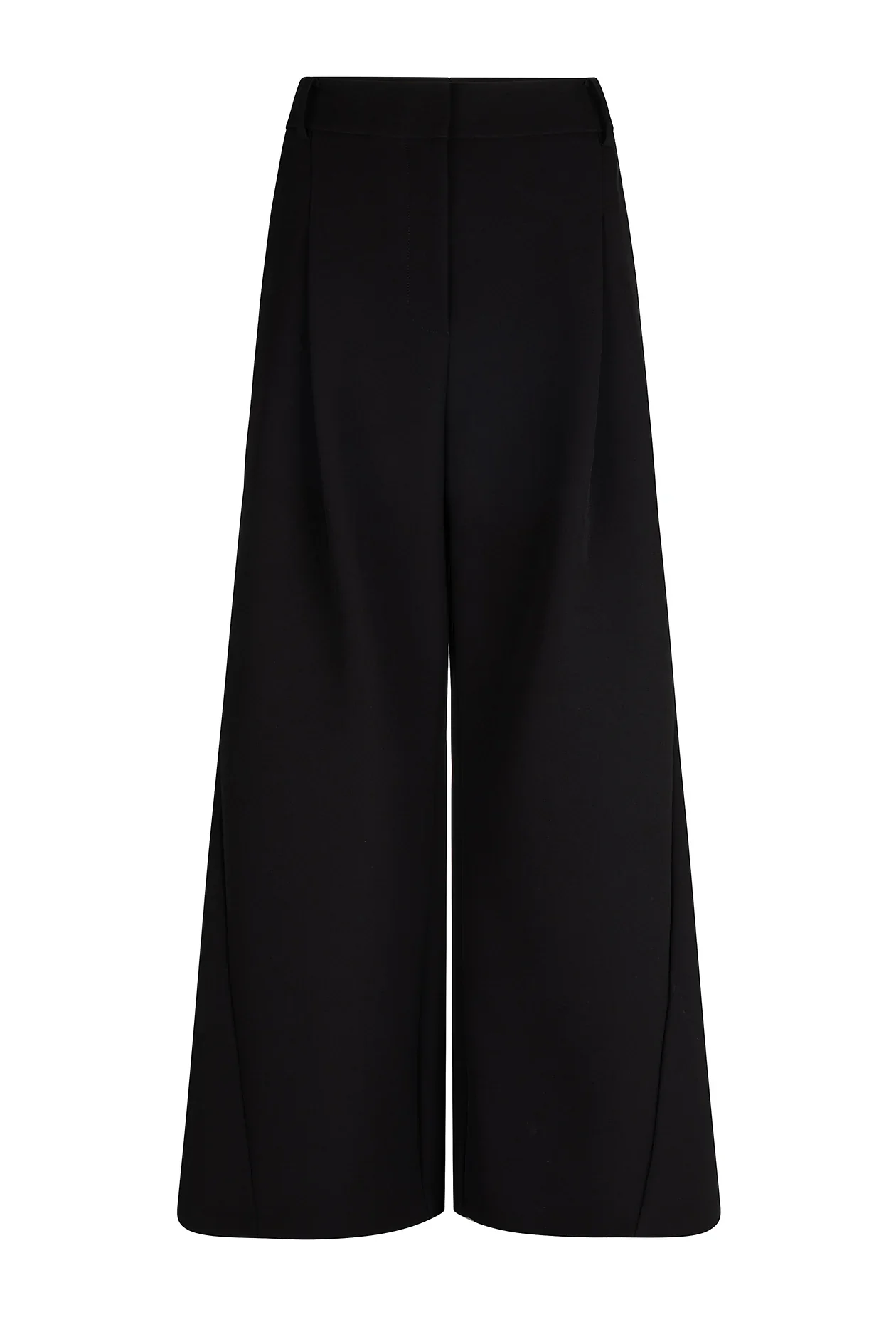 Designed to hang off the hip, moving into a wide gradual flare. This slouch trouser is designed with relaxed tailoring influences and made in bonded suiting. Detailing includes contoured side seams that curve inwards, centre facing front pleats, pockets and belt loops.